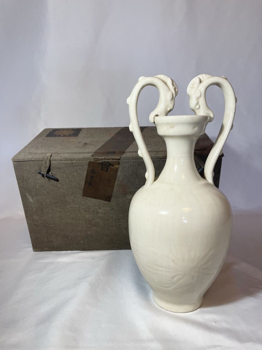 - 【故宮】易定窯 双龍柄徳利 H30cm 宋代 唐 白釉双龍耳瓶 故宮保管委員会 北平古物陳列所 重慶 宗陵 花瓶 中国古玩 唐物 中国美術 花入 置物