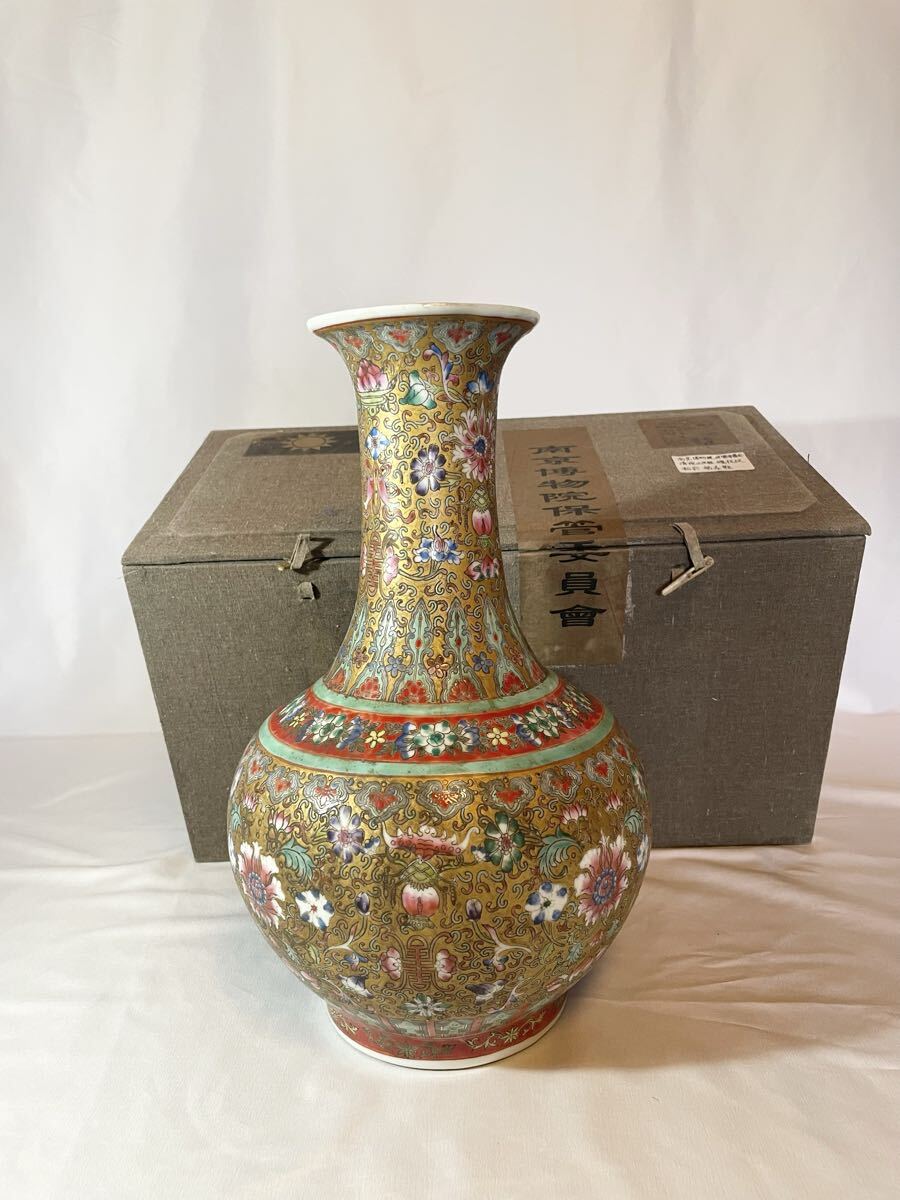 > 【故宮】纏枝紋 粉彩 福寿瓶 H35-W22cm 壺 花瓶 南京博物院保管委員会 大清雍正年製 中国古玩 骨董品 古美術 中国美術 時代物 花瓶 置物
