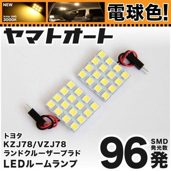 > ランドクルーザープラド KZJ78/VZJ78 トヨタ 78プラド 電球色96発 LED ルームランプ 2点 車検対応 暖色 3000K PRADO 内装品 パーツ