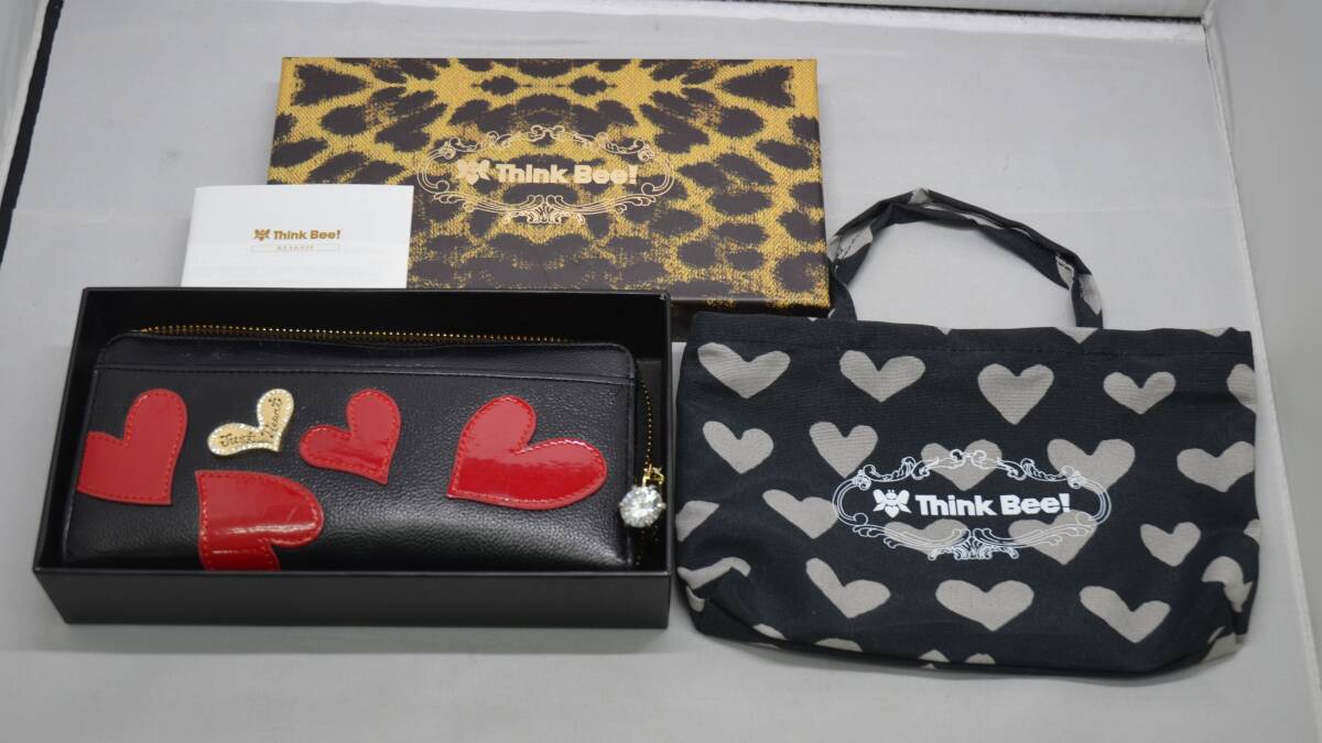 - 【大黒屋】Think Bee! シンクビー 長財布 レッドハーツドリームス L字ファスナー ブラック×レッド ウォレット 箱付