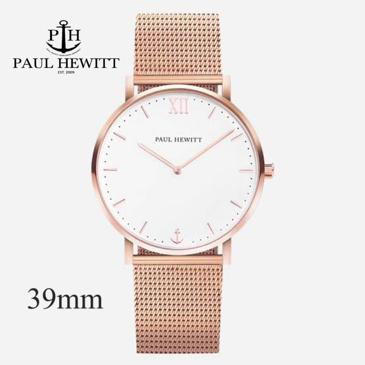 - 【新品/39mm】PAUL HEWITT Sailor Line White Sand Rose Gold MESH ポールヒューイット セーラー ローズゴールド メッシュ 9833501