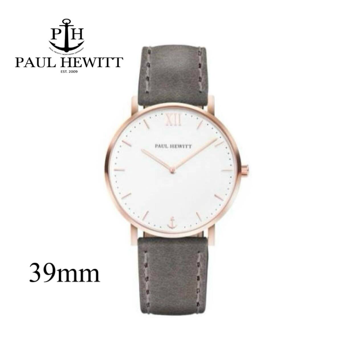 - 【新品/39mm】PAUL HEWITT ポールヒューイット Sailor Line セーラーライン ホワイトサンド/ローズゴールド グレー レザー 革 9833503