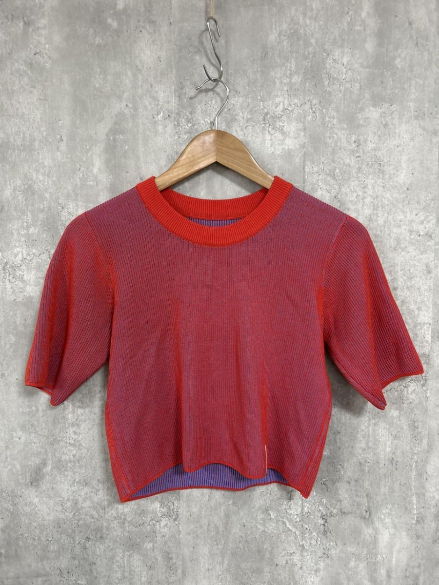 - VACANCY ヴァカンシー 配色プレーティングハーフスリーブニット カットソー 赤×青 ■◇ レディース