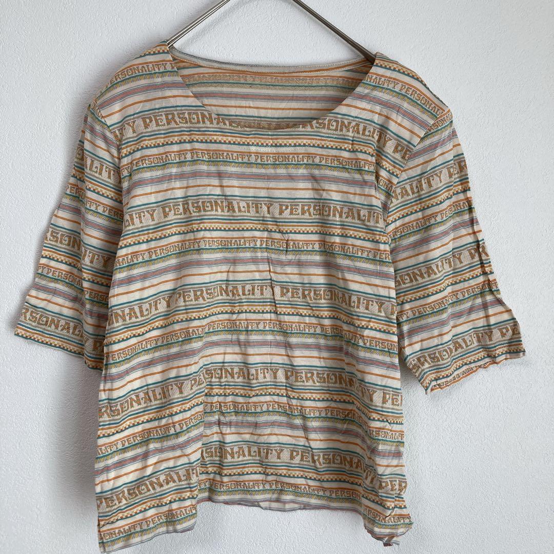 - 【美品】LUNECE(M)ボーダーシャツ*ゆるダボ*綿100%*バトーネック