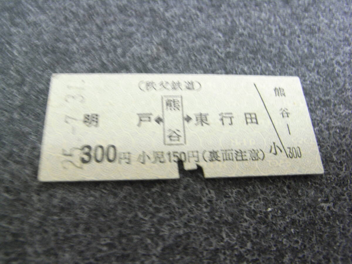 - 秩父鉄道 明戸←熊谷→東行田 300円 昭和25年7月31日 熊谷駅発行