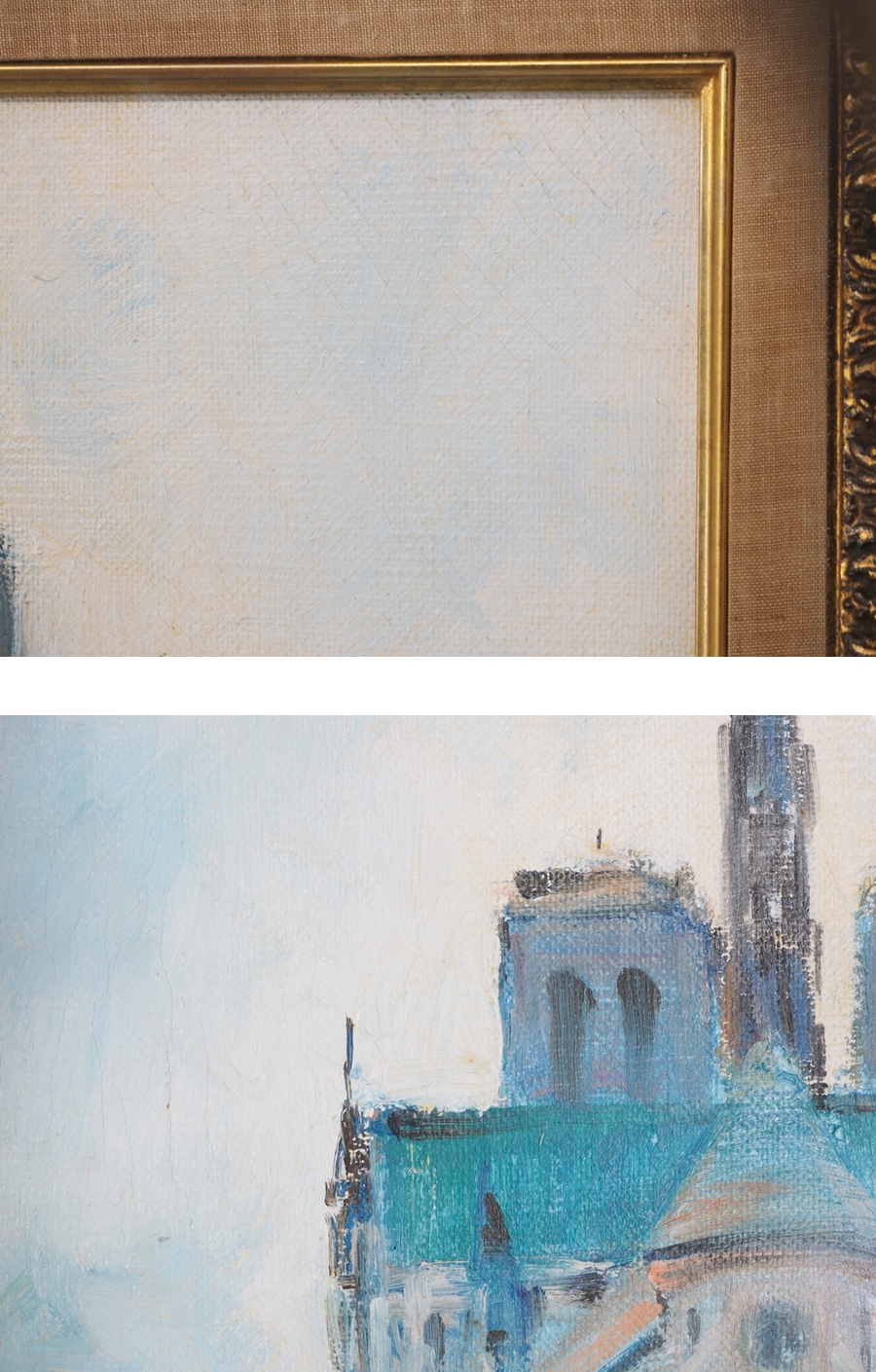 - 【真作】【渡鹿庵】[後藤弘] 20867 絵画 油彩画 「ノートルダムとセーヌ河」 15号 風景画 一線美術協会 在銘