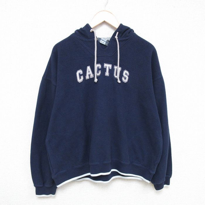 > XL/古着 長袖 スウェット パーカー メンズ CACTUS 刺繍 表起毛 紺 ネイビー 23nov22 中古 スエット トレーナー トップス