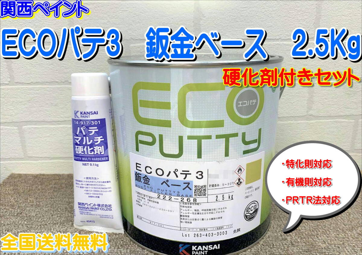 - (在庫あり)関西ペイント ECOパテ3 鈑金ベース 2.5Kg 硬化剤付きセット 鈑金 自動車 補修 塗装 エコパテ 全国送料無料