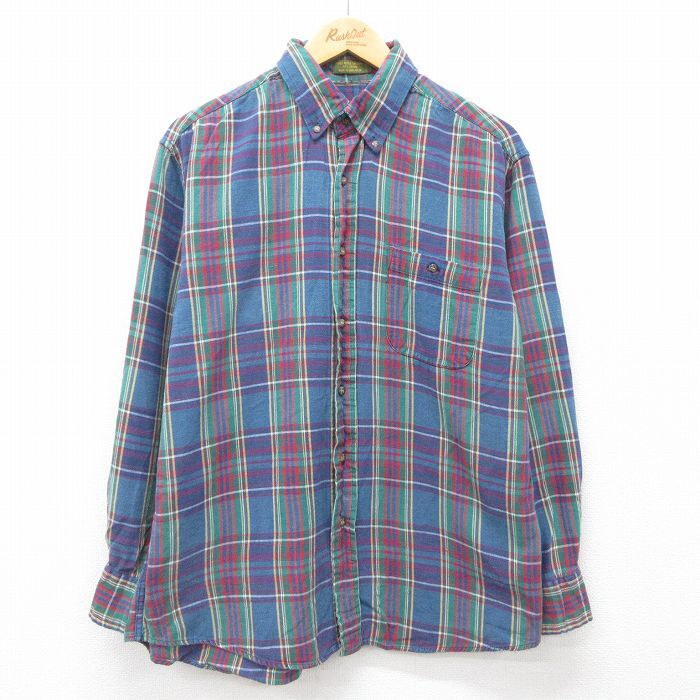 > L/古着 ボストントレーダーズ 長袖 フランネル シャツ メンズ 00s コットン ボタンダウン 紺他 ネイビー チェック 24dec25