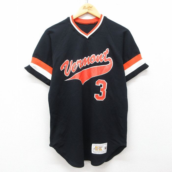 > L/古着 ラッセル 半袖 ビンテージ Tシャツ メンズ 70s バーモント 3 ラグラン Vネック 黒他 ブラック ユニフォーム ゲームシ