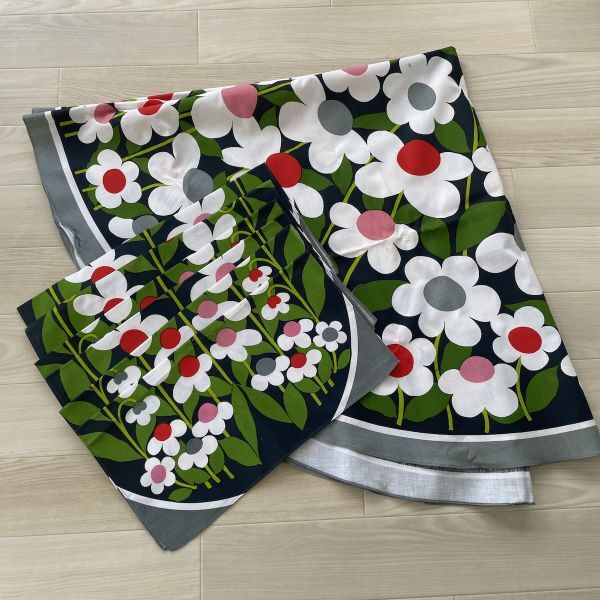 > 訳あり 保管シミ有 新品 未使用 セット 円形テーブルクロス 直径154cm &ランチョンマット6枚 47x47cm 布 花柄 デザイン 北欧 昭和レトロ