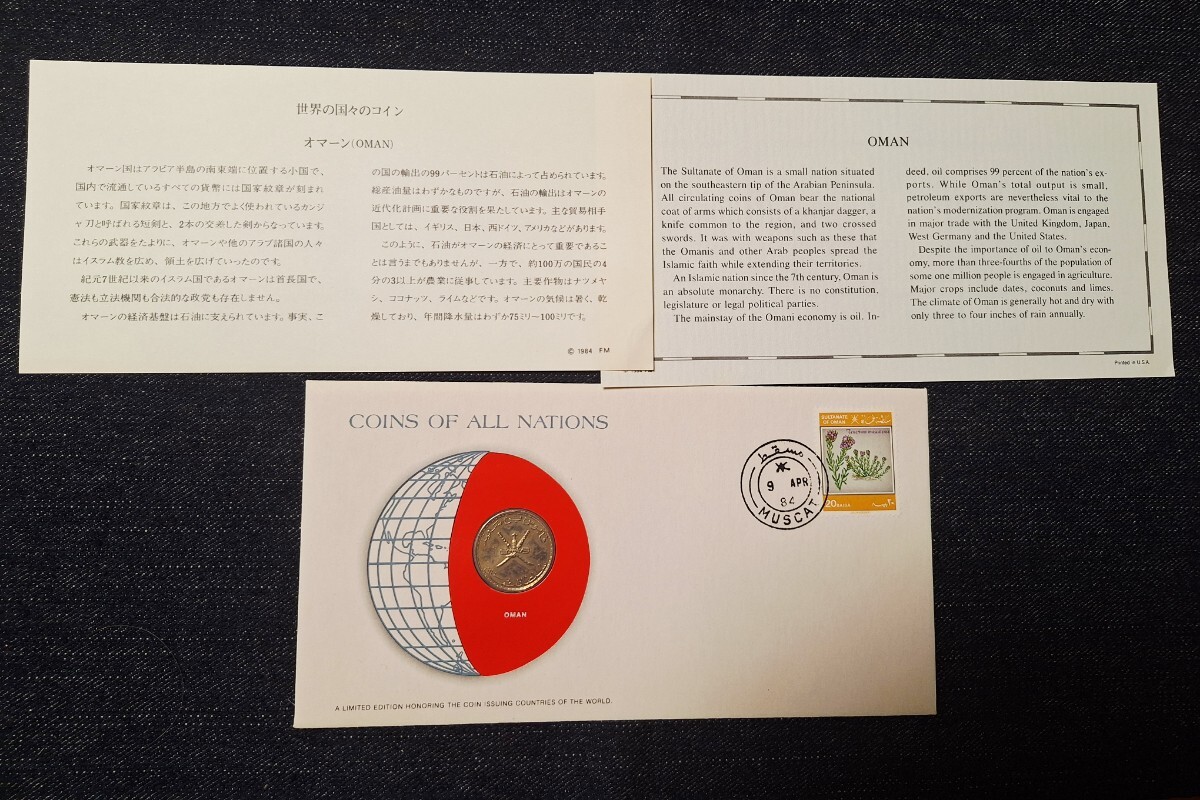 - フランクリンミント社 完全未開封!貨幣 コイン 世界の国々のコイン 1984 FMJ オマーン OMAN 日本語解説書付き!COINS FM社製