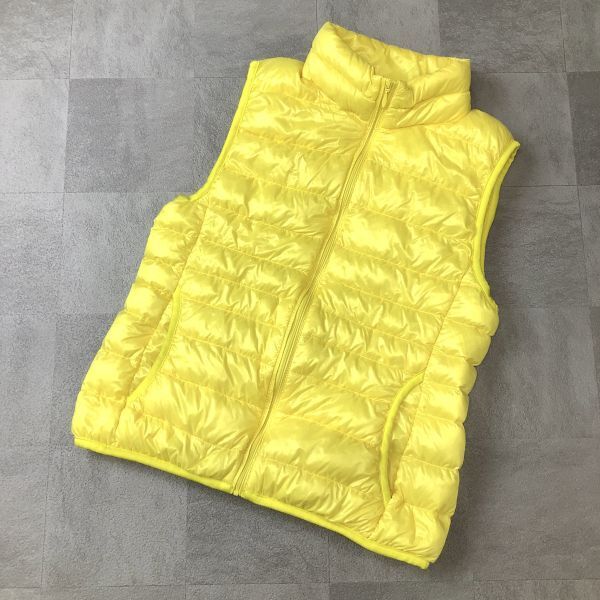 > 良品 ユニクロ UNIQLO ウルトラライトダウンベスト ダウンジャケット レディース イエロー Mサイズ golf ゴルフウェア 軽量ダウン