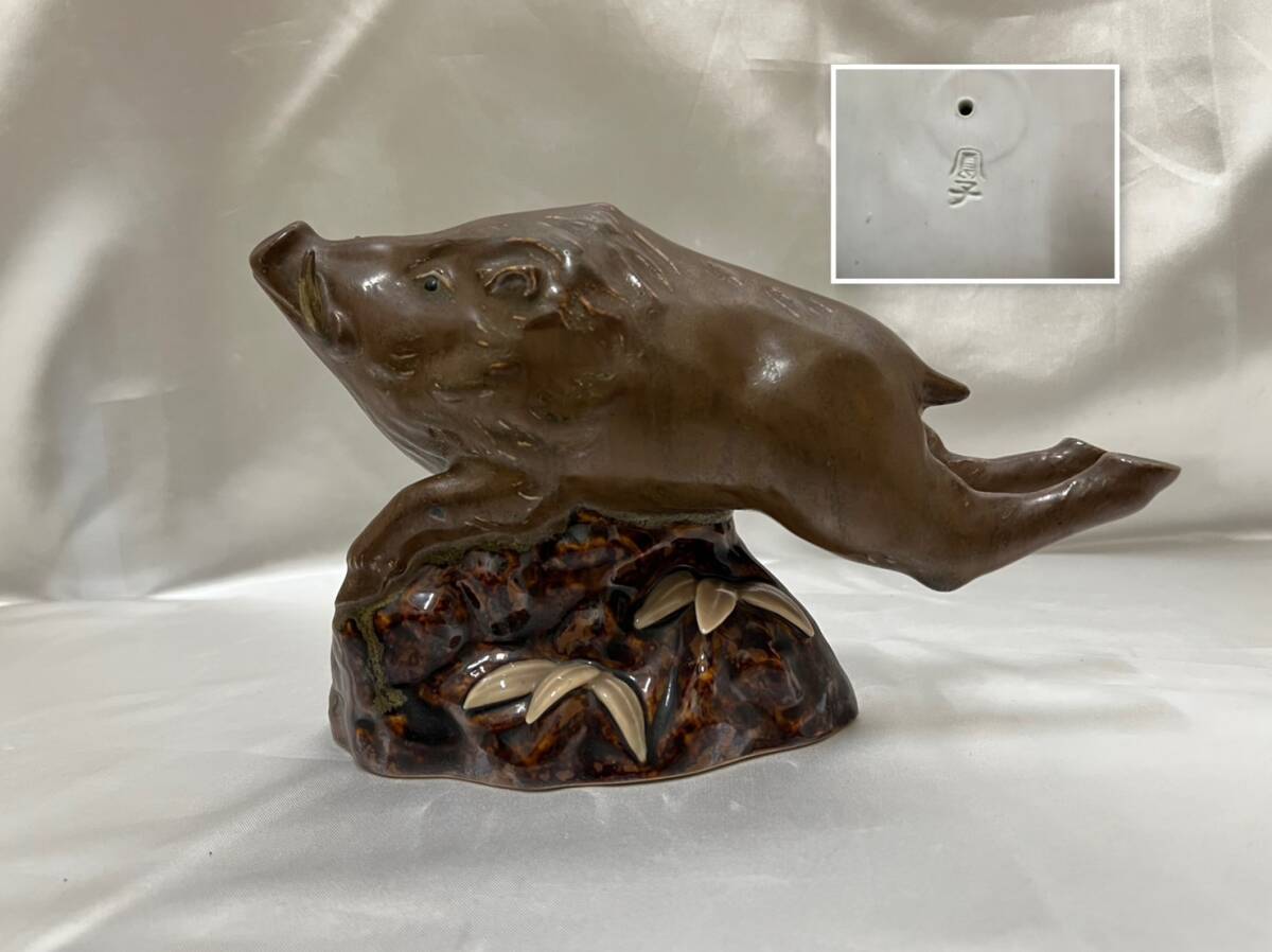 - 7B) 鳳子 猪 置物 イノシシ 陶器 高さ約14.5cm 0931