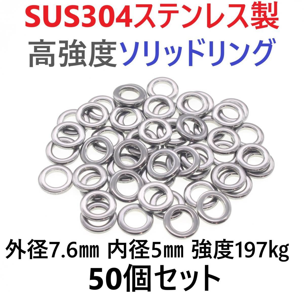 > 【送料150円】最強素材! SUS304 ステンレス製 高強度 ソリッドリング 7.6mm 50個 打ち抜きリング 長時間研磨 ジギング メタルジグ