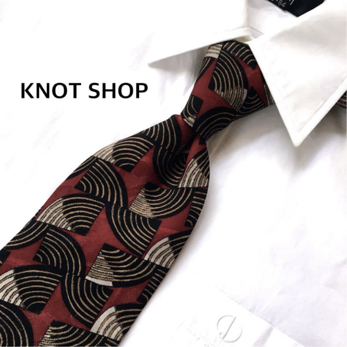 - KNOT SHOP シルク 絹 100% ネクタイ メンズ 和柄 総柄 レア アメリカ製 USA製 赤 黒 ビジネス カジュアル フォーマル ヴィンテージ