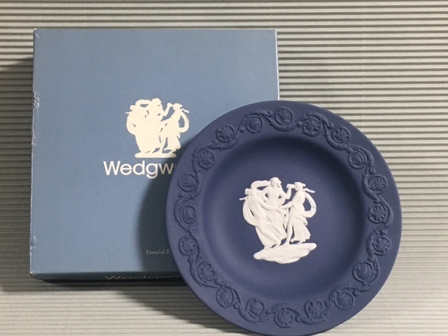 - ◎ウェッジウッド 紺色ジャスパー 小型プレート「3美神」◎箱付z38