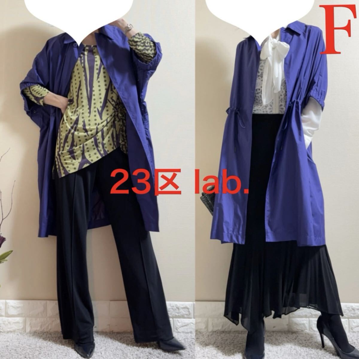 > 新品級!23区 lab. ニジュウサンク ラボ ミズノ 定価29,920円 薄軽 コート F ゆったりフリーサイズ ネイビーブルー