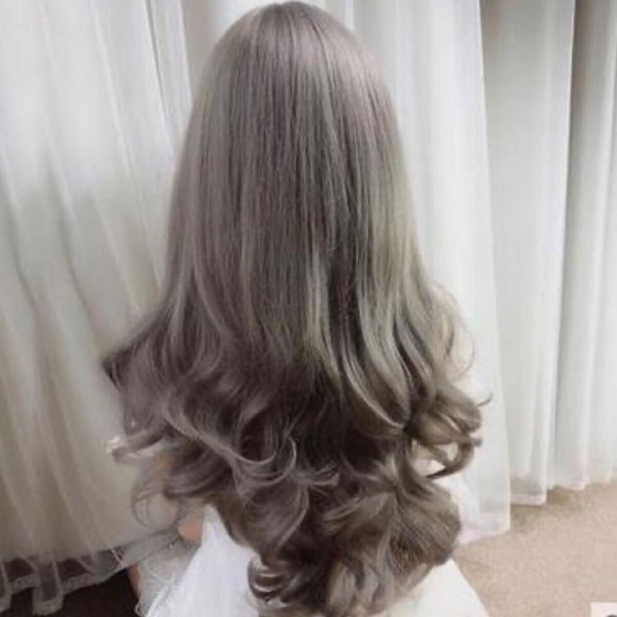 - Mw1◎フルウィッグ ファッションウィッグ ロング カール ウェーブ グレー かつら