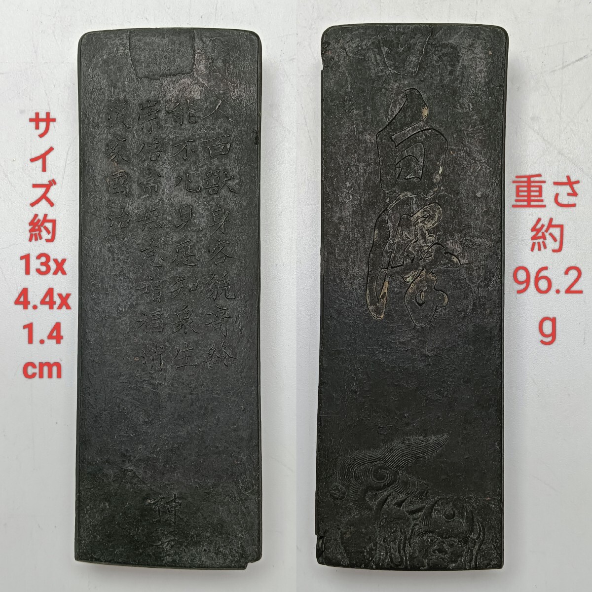 - 【W0119】古墨1本 唐墨 中国墨 漢文獸彫刻 陳立 文房四宝 書道具 唐物 中国古玩 骨董品 アンティーク