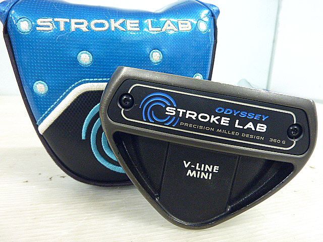 > T421 良品 オデッセイ ODYSSEY STROKE LAB V-LINE MINI ゴルフ パター 33インチ ヘッドカバー付き スチールシャフト 男性 右利き GOLF