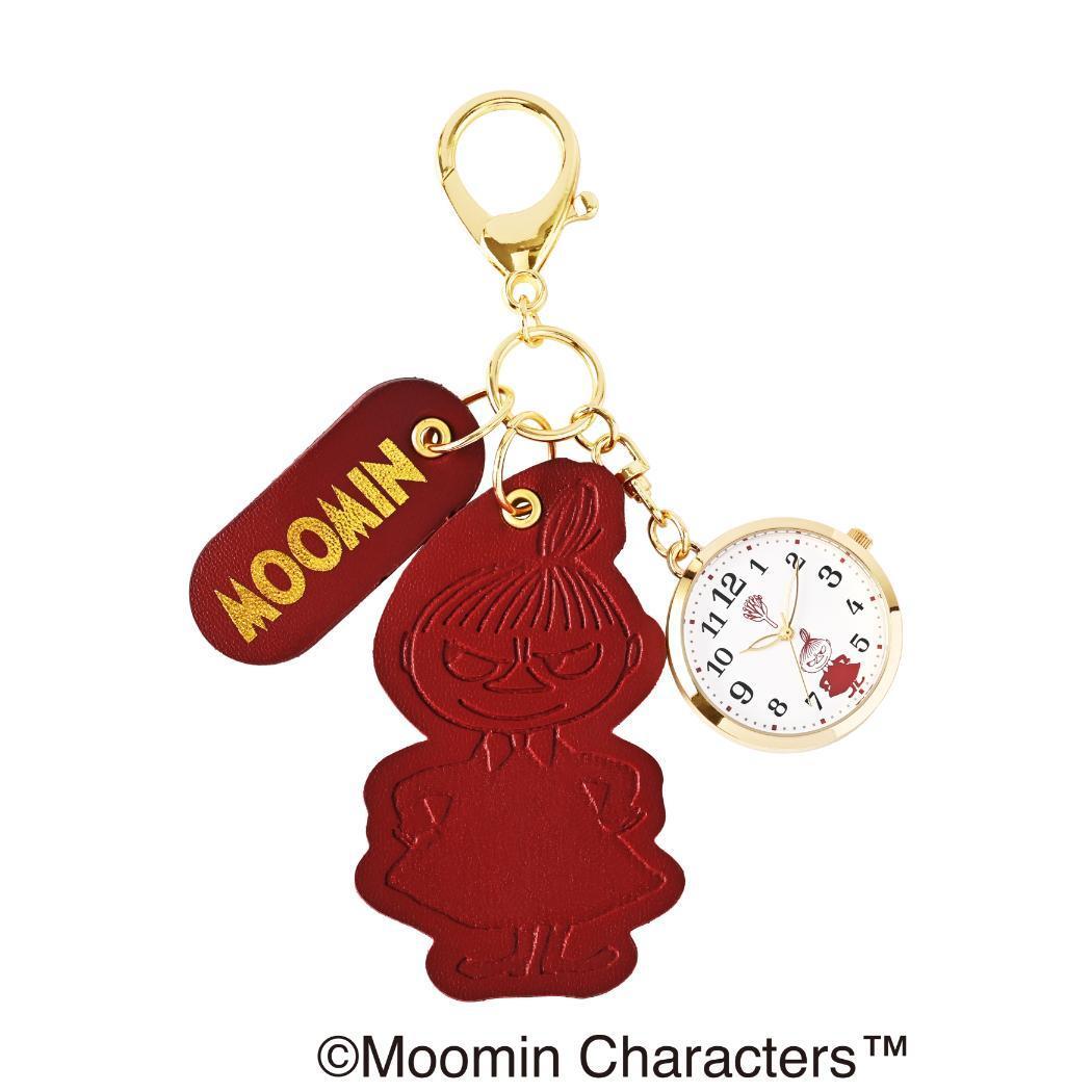 - ムーミン キーホルダー時計 ムーミン型押しレザーチャームKC RE レッド リトルミイ 北欧 フィールドワーク バッグチャーム キ
