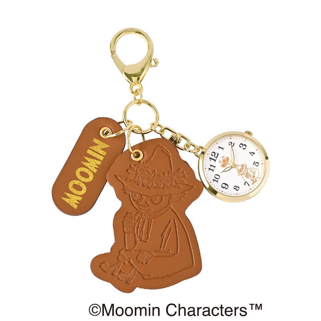 - ムーミン キーホルダー時計 ムーミン型押しレザーチャームKC BR ブラウン スナフキン 北欧 フィールドワーク バッグチャーム