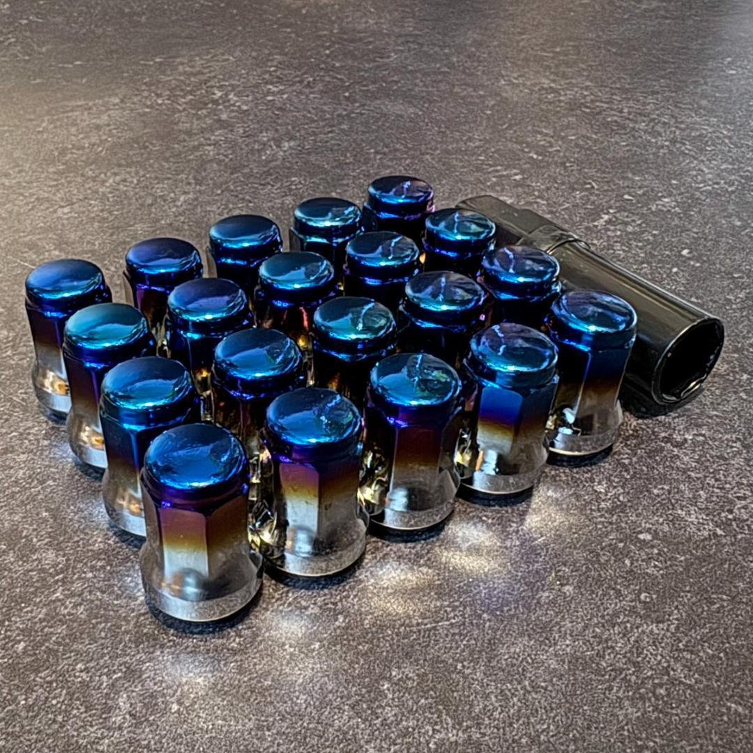 - M12×P1.25 ホイールナット 20個 チタンブルー 32mm 60° 袋ナット ラグナット 日産 スバル スズキ WRX 86 BRZ 純正互換品 管理X5