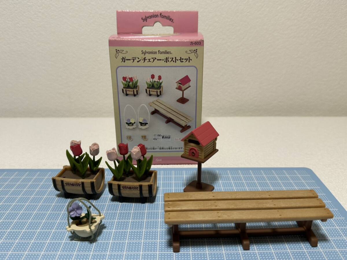 > おもちゃ【om38 シルバニアファミリー ガーデンチェアー ポストセット レア 廃盤 初期 希少 欠品 玩具 当時物 昭和 レトロ ヴィンテージ 】