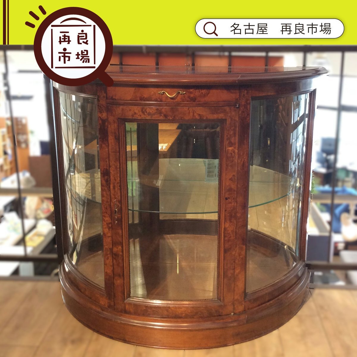 - イタリア製 半月型 キャビネット サイドボード 収納棚 飾り棚 コレクションケース チェスト ハーフムーン アンティーク調