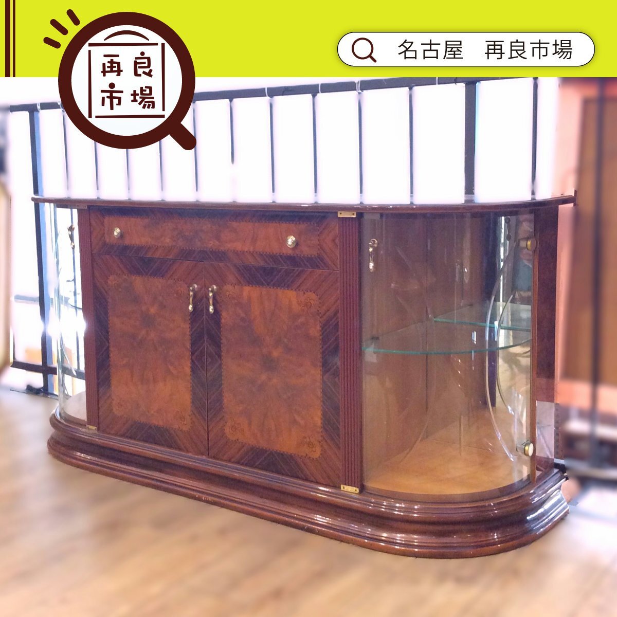 > イタリア製 リビングサイドボード アンティーク調 ガラス扉 コレクションケース 収納 サイドボード チェスト キャビネット