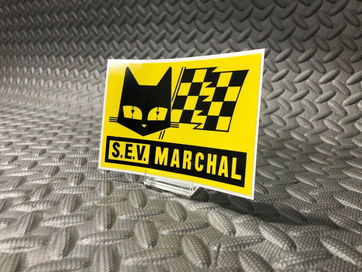 > マーシャル SEV MARCHAL 正規品 ステッカー フラッグ 四角 黄色 大 100mm × 74mm 黒 検)Marshall シビエ ルーカス ロゴ CIBIE デカール