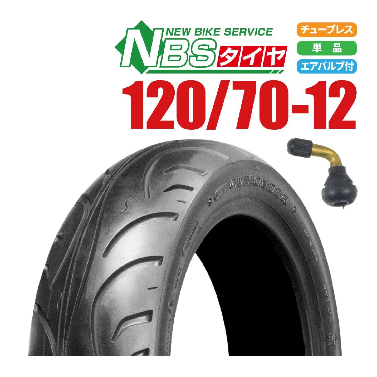 - 新品 NBS スクーター タイヤ 120/70-12 56J T/L エアバルブ 曲型 1個 付き グロム エイプ グランドアクシス バイクパーツセンター