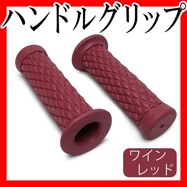 - バイク ラバーハンドルグリップ 汎用 オートバイ 単車旧車原付 ワインレッド 菱形