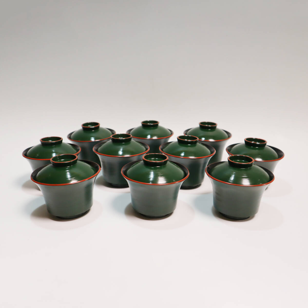 - 青漆松笠蒔絵小 吸物椀 10客 箱有 うつわ/食器 UT082