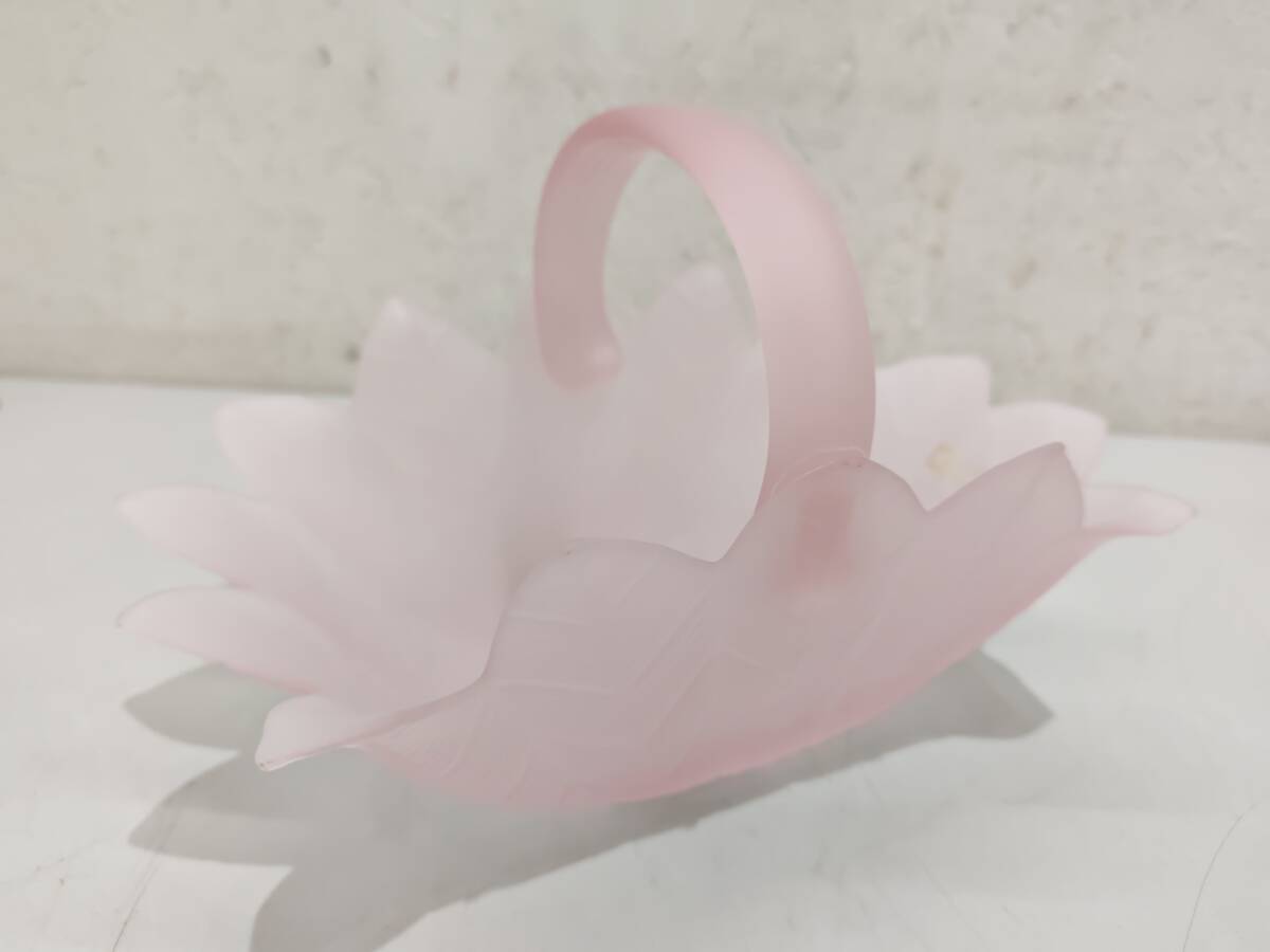 - 70443★持ち手付き ガラス 小物入れ ピンク 手づくり クラタクラフトガラス 昭和レトロ