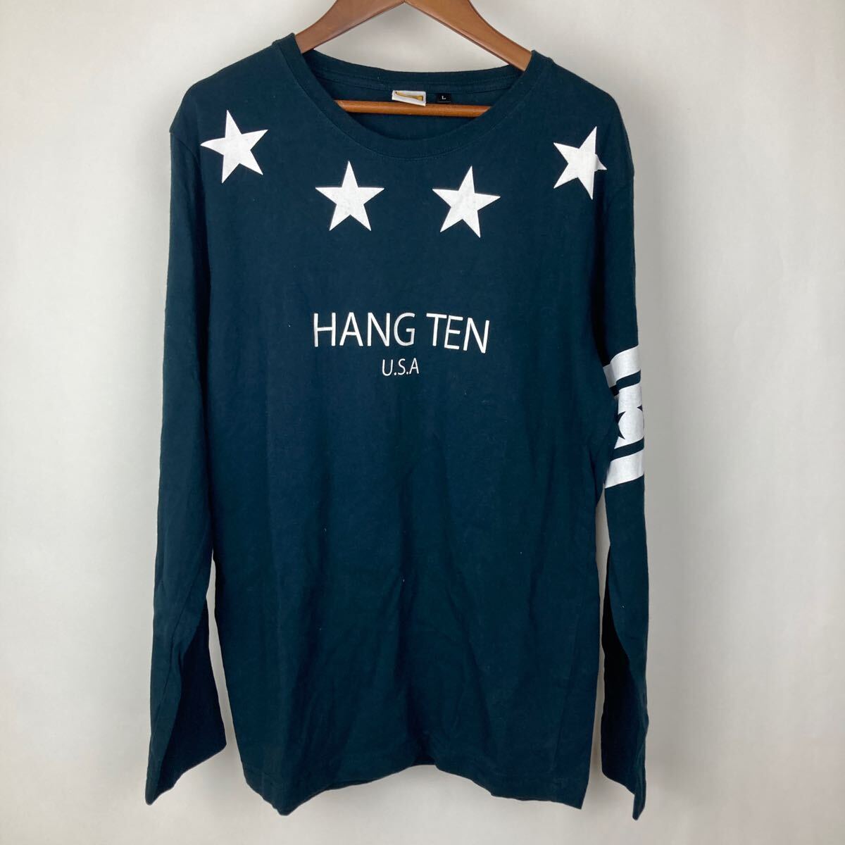 > HANG TEN ハングテン 長袖 Tシャツ ロンT L カーキ グリーン メンズ 男性用 大きいサイズ プリントTシャツ