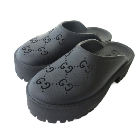 - グッチ GUCCI 663577 サンダル シューズ ラバー スリッポン パーフォレーテッドG GG ブラック 黒 38 25cm レディース
