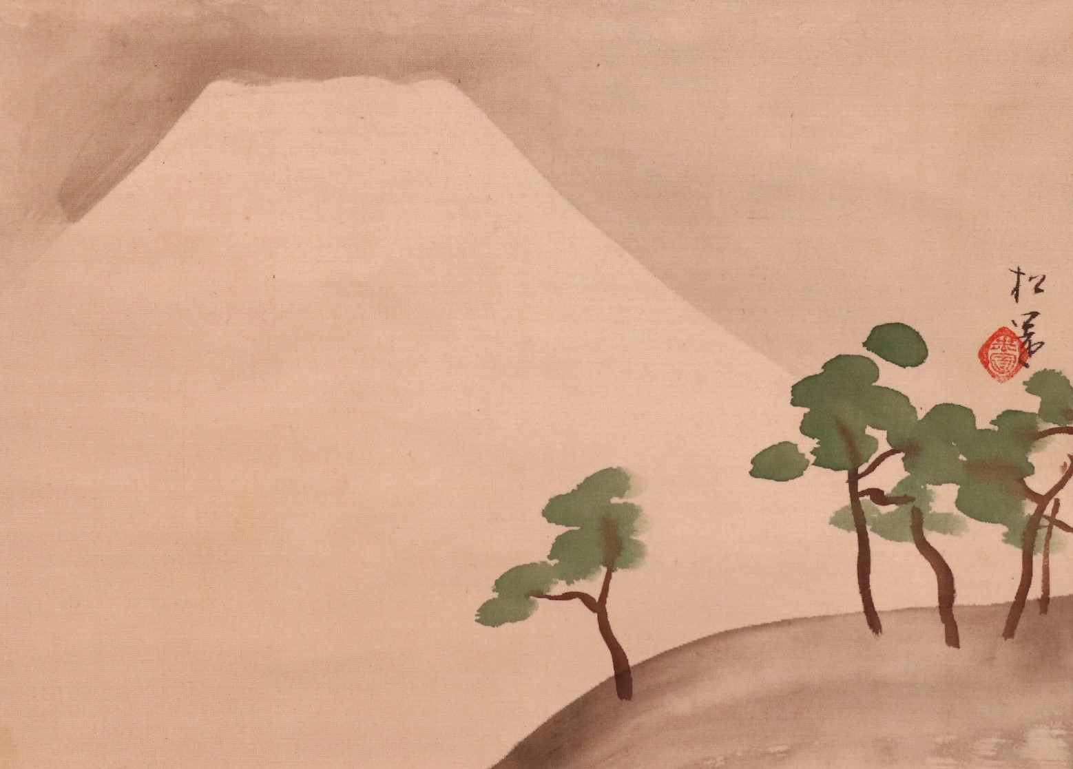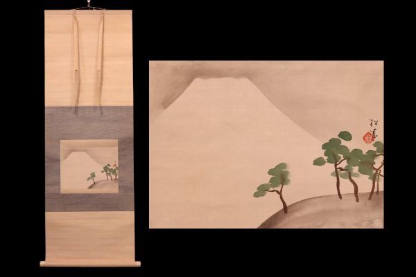 - 123■【真作】上村松園 「富士図」 肉筆 絹本 竹内栖鳳師事 近代美人画 掛軸