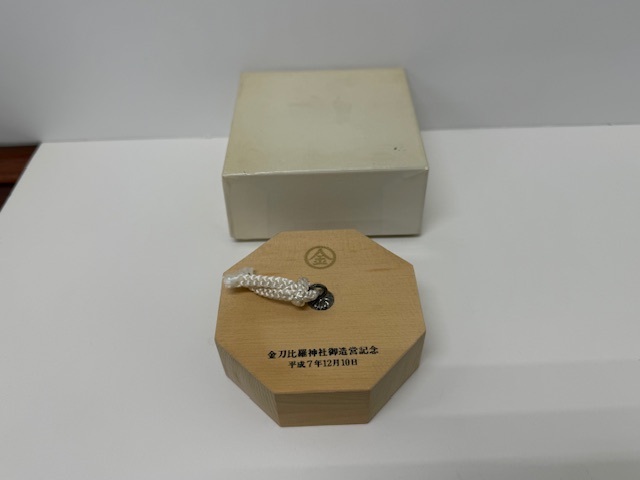 - 木製 八角形 文鎮 金刀比羅神社御造営記念 経年保管品