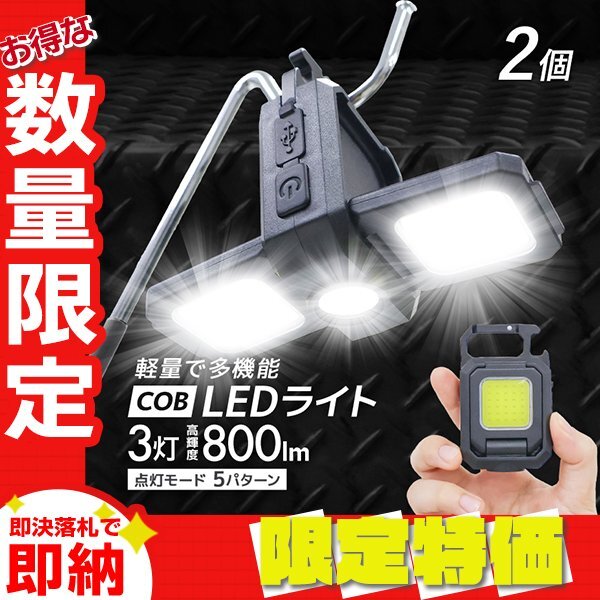 > 【限定セール】懐中電灯 投光器COBライト 充電式 2個セット LED ライト 防災ライト 小型ライト 懐中電灯 COB 高輝度 800m 防水 作業灯