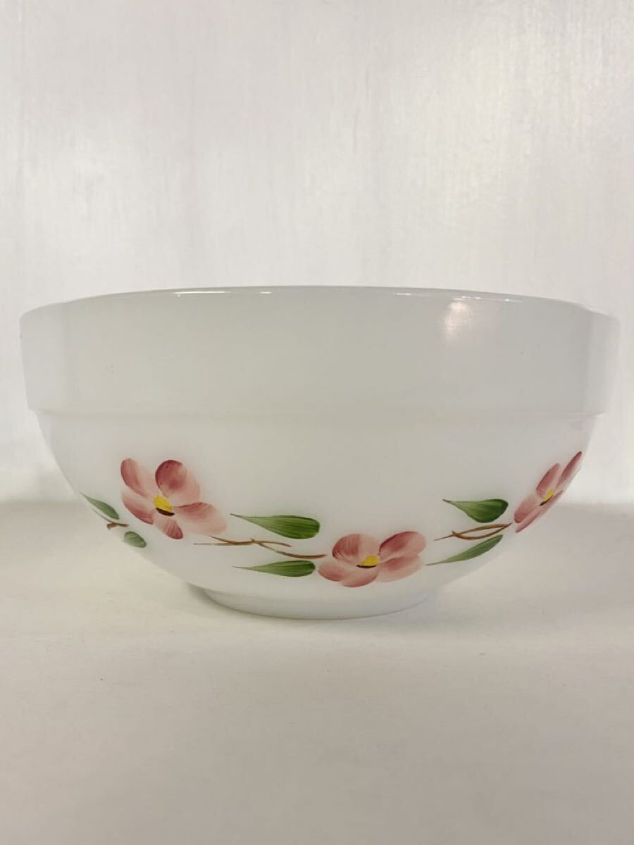 > 1950s ~ 1960s ファイヤーキング キッチンボウル ピーチブロッサム ★ ビンテージ 50s ボウル ゲイファド USA ミルクガラス 耐熱 花柄