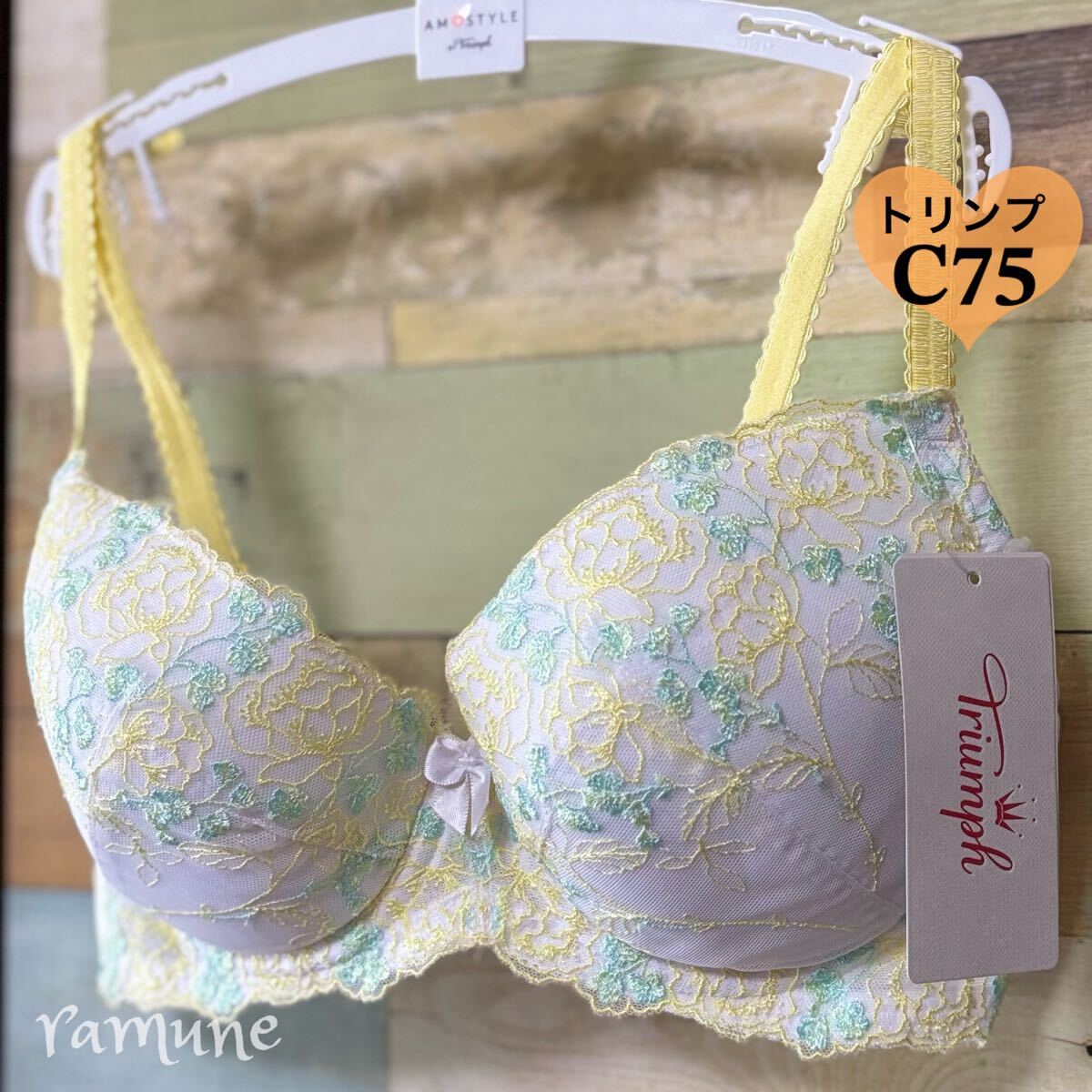 > トリンプ*C75 ホワイト*エントリーコレクション 新品タグ付き Triumph ブラジャー パッド付き 刺繍 寄せ上げブラ 谷間メイク 定価2750円