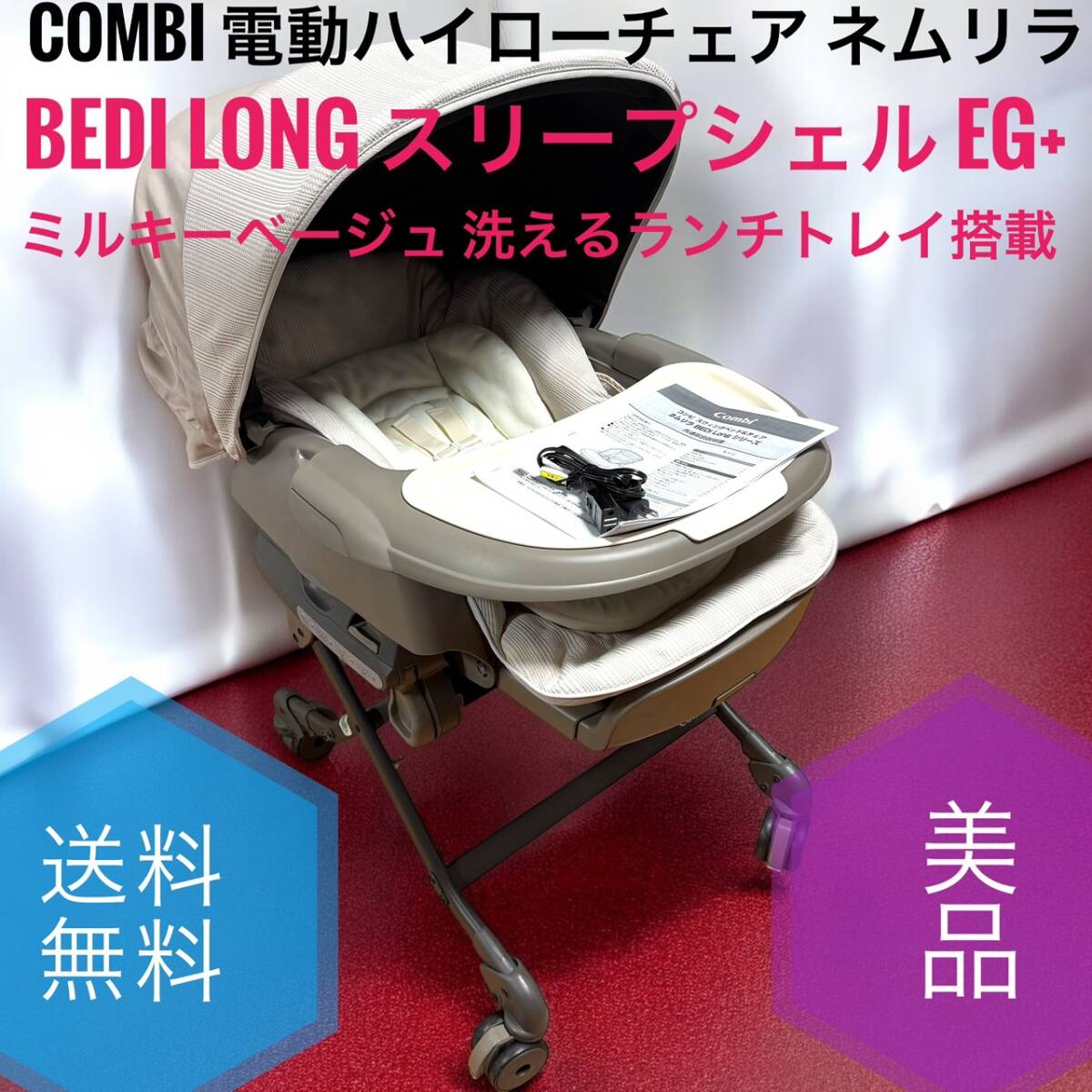 - ☆ 美品 Combi コンビ 電動ハイローチェア ネムリラ AUTO SWING BEDi Long スリープシェル EG+ ミルキーベージュ 洗えるランチトレイ搭載