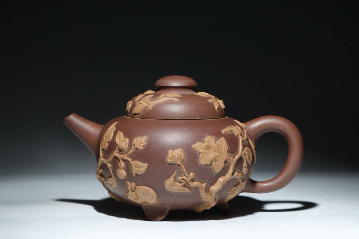 - 『古』【底款・陳鳴遠】重量353g 朱泥 段泥 煎茶道具 急須 単孔口 唐物 孟臣 紫砂壺 紫砂壷 茶壷 茶壷 明代/清代