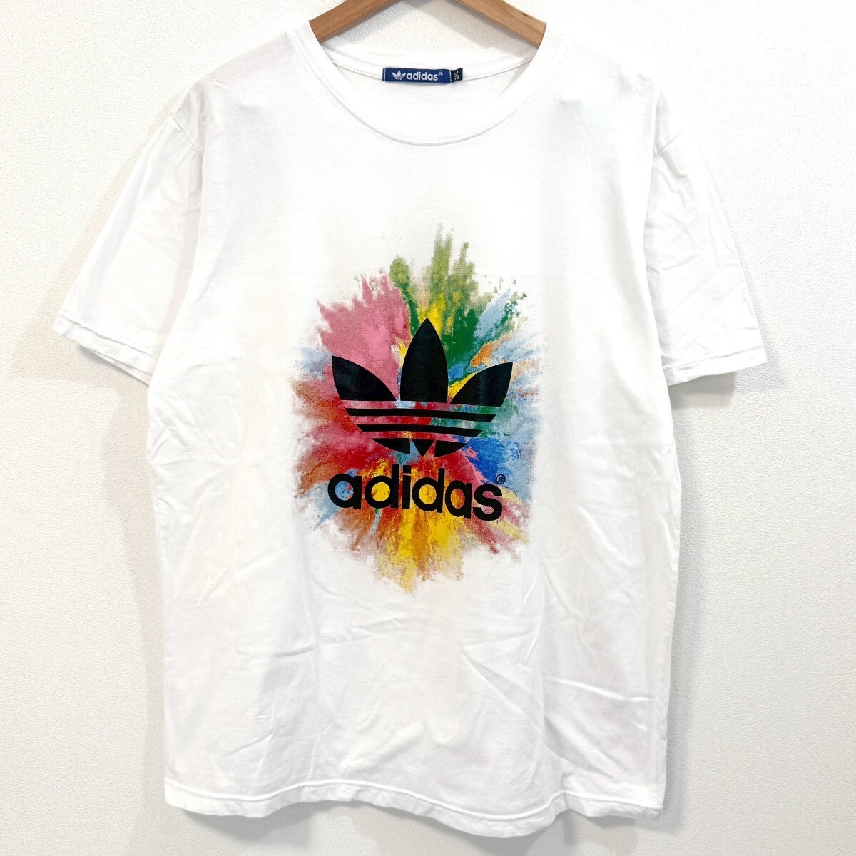 - Ye2049iL adidas アディダス サイズ2XL 半袖Tシャツ ビッグロゴ トレフォイル カラフル プリントTシャツ ホワイト メンズ スポカジ