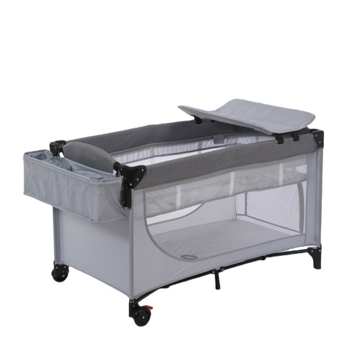 - ベビーベッド 折りたたみ ベビーサークル おむつ替えテーブル付 お昼寝 収納 プレイヤード マットレス付 キャスター付き 多機能 軽量