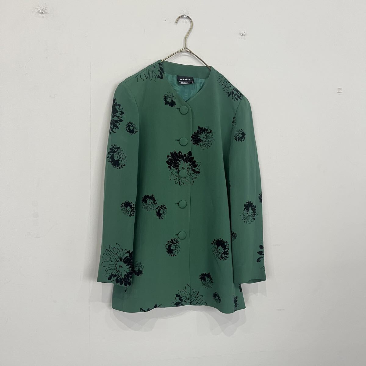 - AKRIS アクリス レディース 総柄 ワンピース 緑 花柄 長袖 ミドル丈 シャツ カットソー トップス
