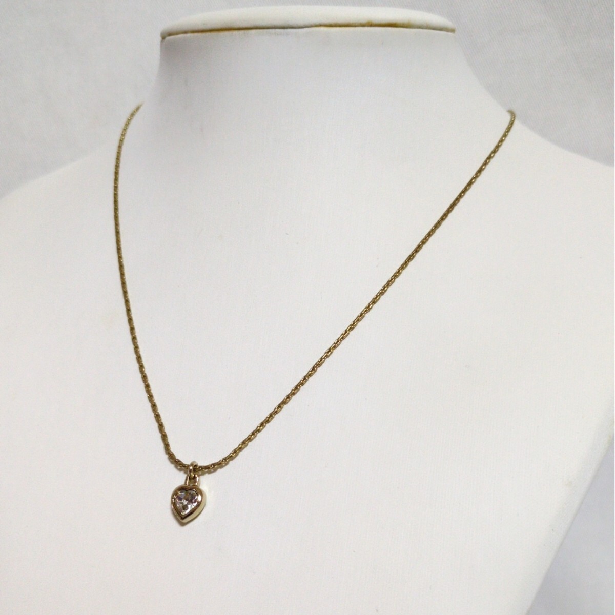 > 良品 Christian Dior クリスチャン ディオール ゴールド ハート ラインストーン ネックレス