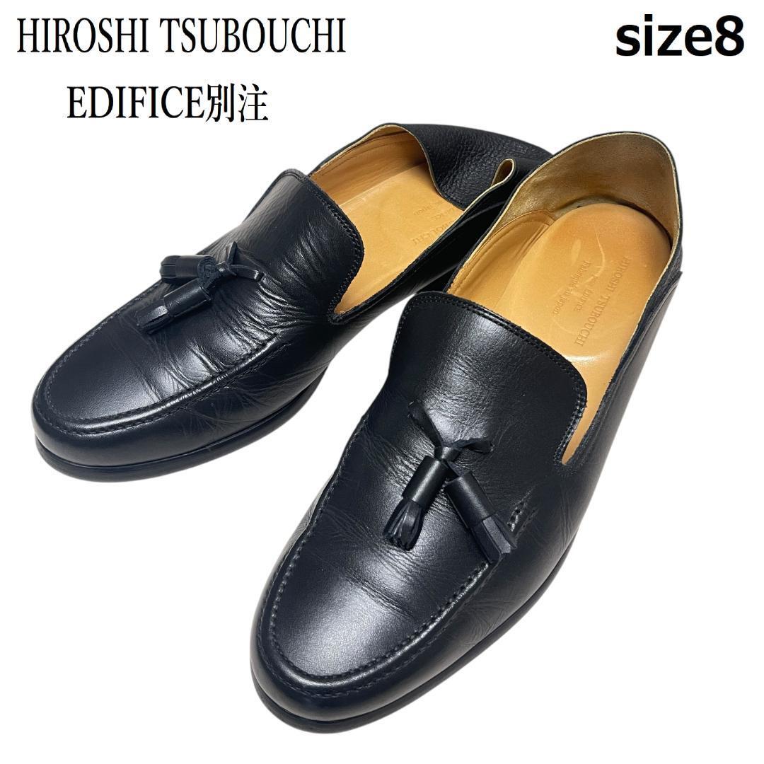 > 【EDIFICE別注】HIROSHI TSUBOUCHI ヒロシツボウチ タッセルローファー バブーシュ 8 26cm レザーサンダル 黒 ブラック